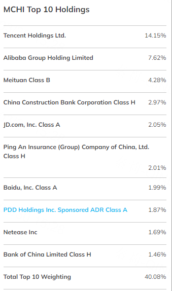 MCHI 广泛投资于在中国大陆和境外上市的中国公司,目前其投资组合中近 8% 投资于阿里巴巴。持有与互联网相关的中国公司的 KWEB 也持有该股 8% 的权重。