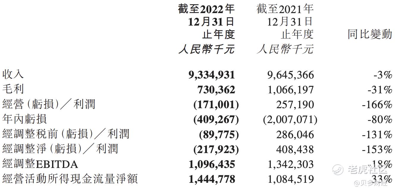 3月28日,安能物流(HK:09956) $安能物流(09956)$ 发布截至2022年12月31日的2022年年度业绩报告。财报显示,安能物流2022年的收入约为93.35亿元,较2021年同期的96.45亿元下降3%;毛利为7.30亿元,较2021年同期的10.66亿元下降31%。