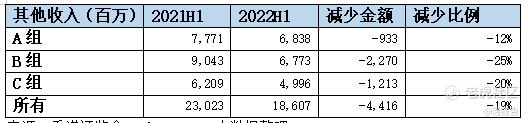 从其他收入来看,联交所参与者2022年上半年总额186.07亿港元,同比减少19%。各组别中A组同比减少比例最少,为-12%,B组同比减少最多为-25%。
