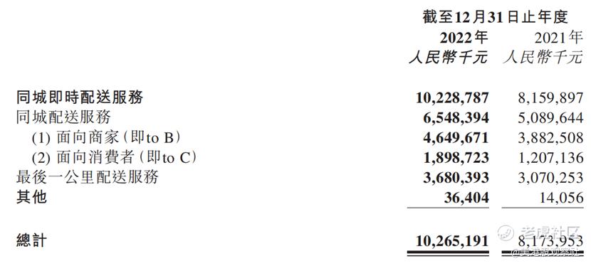 营收增长的主要驱动力来自于同城配送服务和最后一公里服务两大业务板块。其中,同城配送服务的收入为65.48亿元,同比增长28.7%;最后一公里服务的收入为36.80亿元,同比增长19.9%,这两大业务板块占总营收的比例分别为63.8%和35.9%,贡献了绝大部分的收入。