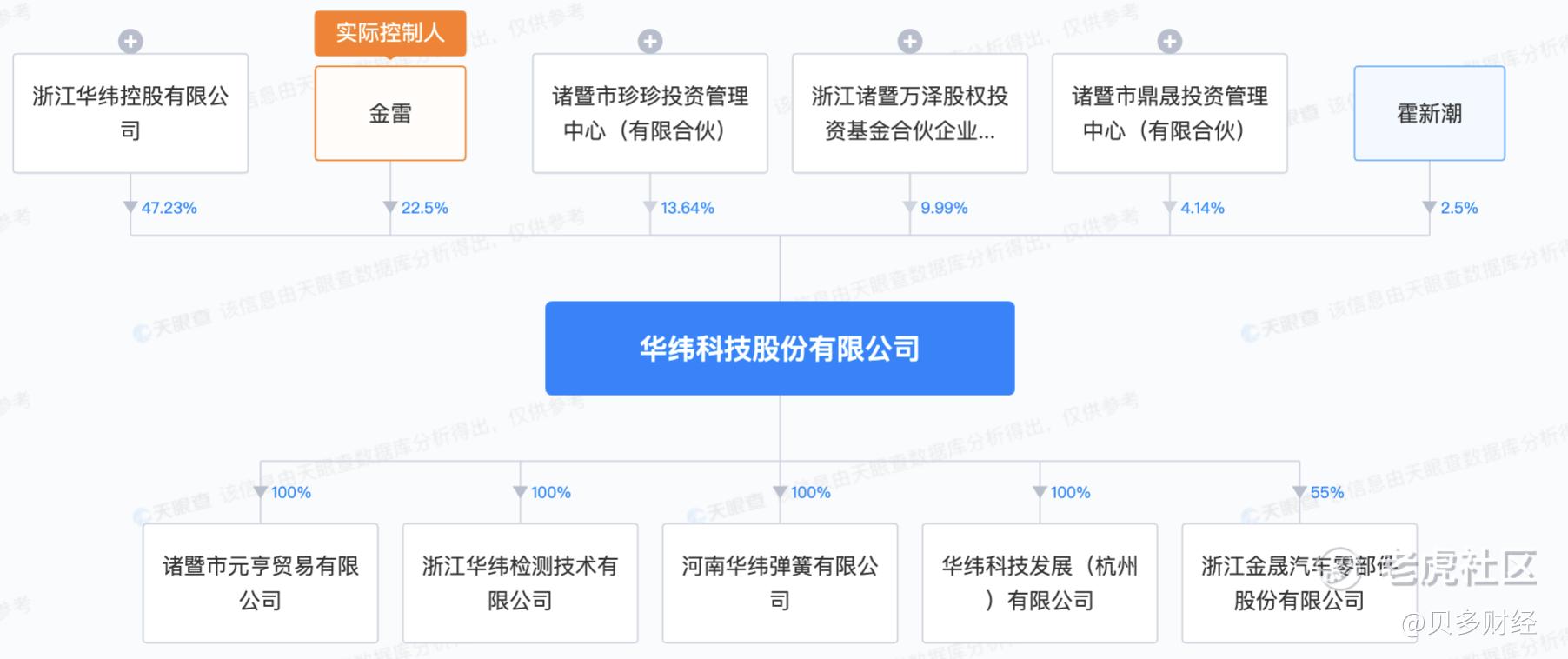 本次上市前,华纬科技的实际控制人为金雷,其直接持有该公司22.50%的股权,并通过华纬控股、珍珍投资和鼎晟投资控制该公司65.01%的股份。目前,金雷为华纬科技董事长兼总经理。