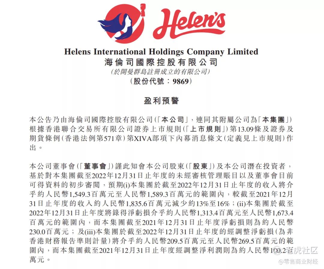 海伦司2022年度业绩公告:收入15亿,亏损16亿