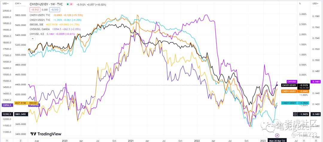 HSI-HKD-HIBOR仍为高位,3.5+,主要是一方面USD高位利率煎熬+CNY低利率的兜底,目前银行危机使得USD利率回落,也给HSI一口喘气的机会,不然又是一轮腥风血雨的狙击···