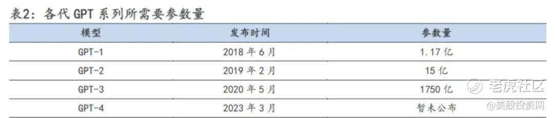 OpenAI在2018年推出的GPT-1,只有不到1.2亿参数量,而最后一个公布了参数量的GPT-3则有1750亿,虽然有一些专家认为ChatGPT和GPT-4的参数量有可能更小,但业界多数的声音认为,更强大的模型就以为这更大的参数规模,且要消耗更多的算力。