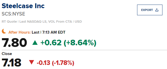 Steelcase (SCS)第四季度每股收益0.19美元,比市场预期值为0.11美元高0.08美元。营业收入同比增长6.5%至8.017亿美元,市场预期值7.5138亿美元。该公司上调了1季度业绩展望,预计每股收益0.01-0,05美元,市场预期值0.00美元。预计1季度营业收入7.10-7.35亿美元,市场预期值6.9377亿美元。预计2024财年每股收益0.55-0.75美元,市场预期值0.59美元。预计2024财年营业收入相比2023财年将实现温和的有机增长。