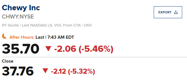 Deutsche Bank将Chewy (CHWY)的评级从买入降低至持有,目标价降低至35美元。
