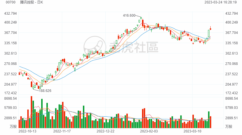 - 阿咕咕咕·2023-03-25$腾讯控股$公布好业绩,股价上涨,科技股市场表现向好。 📈💻🚀点赞举报