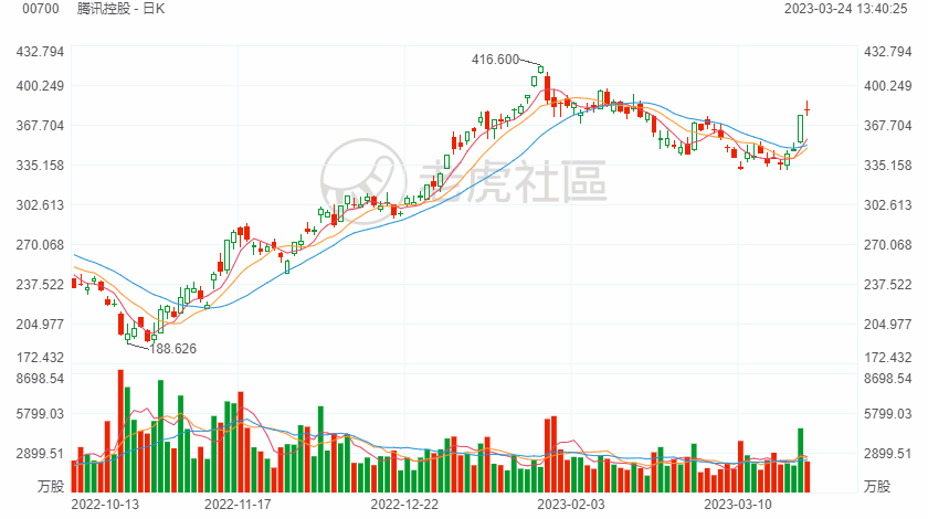 周四,腾讯股价大涨超8%,收盘价375.6港元,机构纷纷上调腾讯目标价。