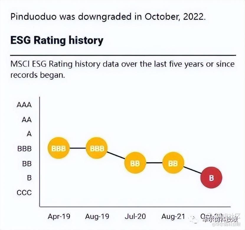 此外,数据隐私安全问题还拖累了拼多多的MSCI ESG评级。ESG评级是MSCI(明晟指数)针对环境、社会和公司治理方面的表现进行的评级。拼多多评级排名靠后也是由于数据隐私安全性不理想。