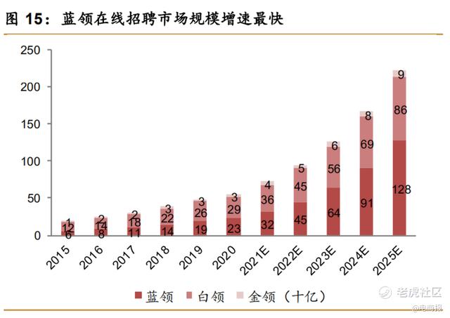 BOSS直聘的招股书显示,2025年,蓝领招聘线上渗透率有望提升至30%左右,届时蓝领在线招聘市场规模或将达到128.5亿元。