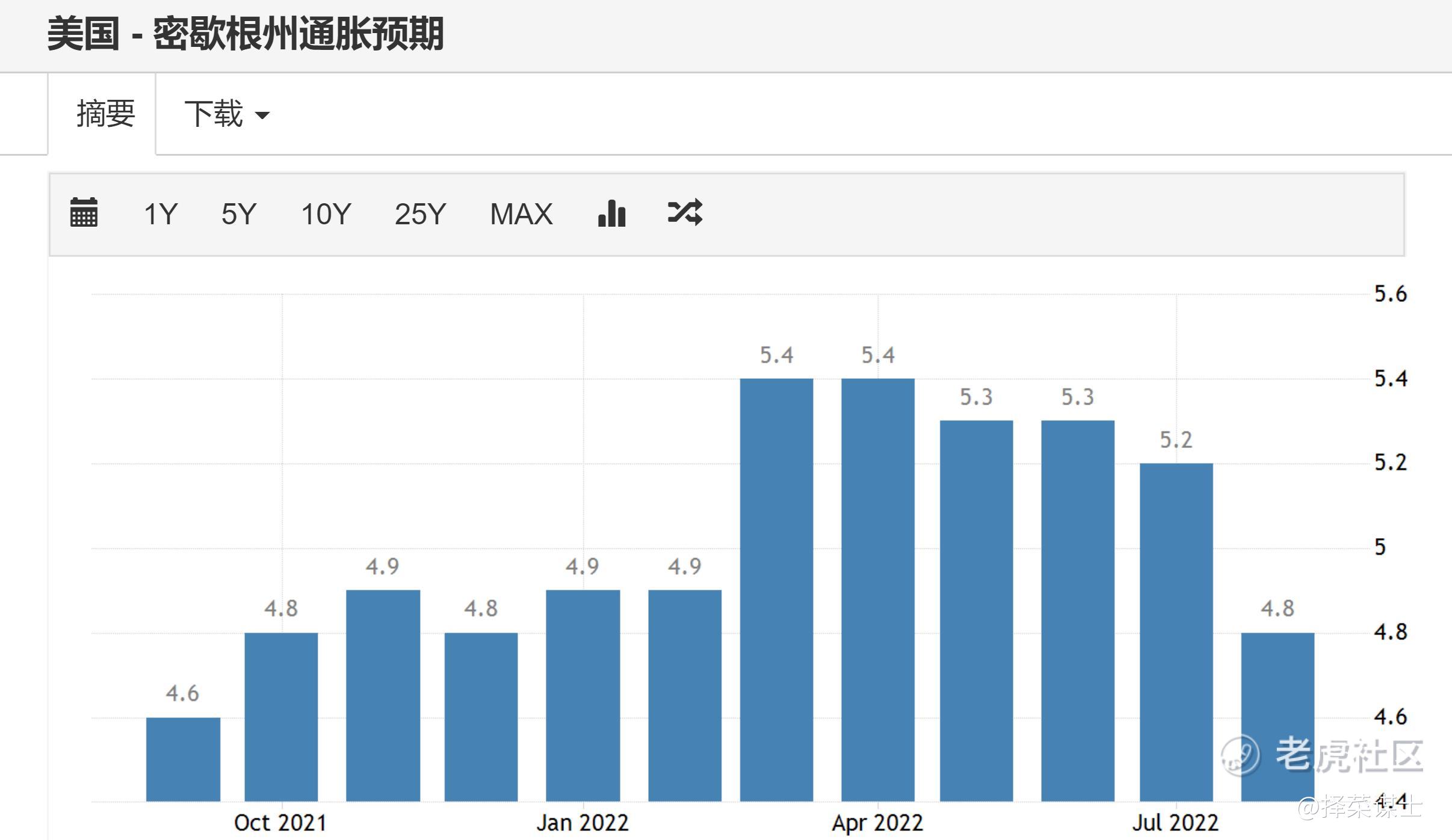 从8月份的密歇根州通胀预期数据来看,8月份降至4.8%,环比上个月继续明显回落,延续了通胀回落的趋势