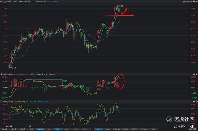 今天玉米01合约开盘价2804,收盘价2792,日内下跌了12个点,最高价2805,最低价2788,日线收阴。