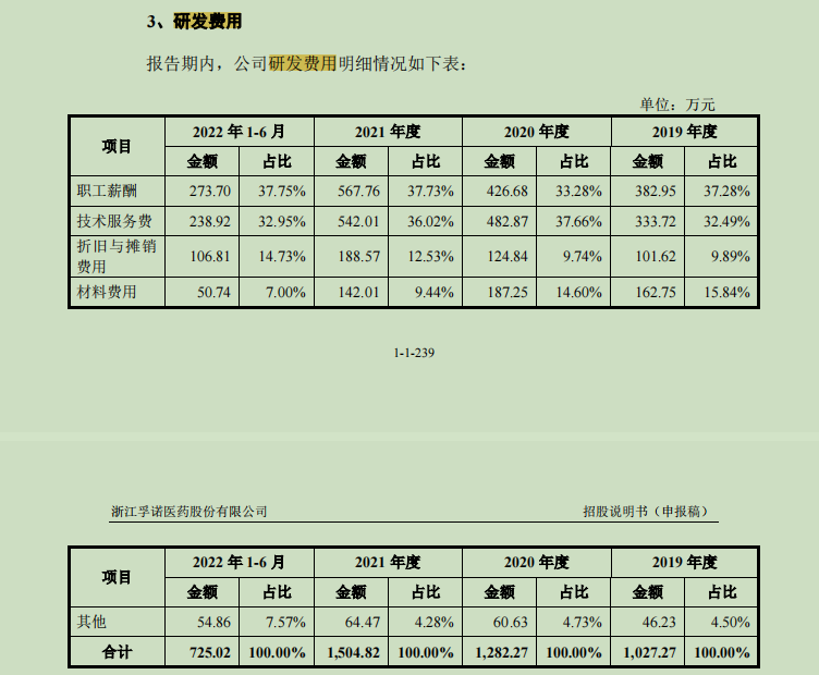 孚诺医药研发费用构成表,截取招股书