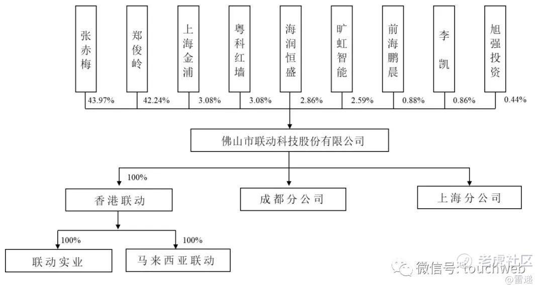 联动科技的控股股东、共同实际控制人为张赤梅、郑俊岭。IPO前,张赤梅直接持有公司43.97%股权、郑俊岭直接持有公司42.24%股权,两人合计持有公司86.21%股权。