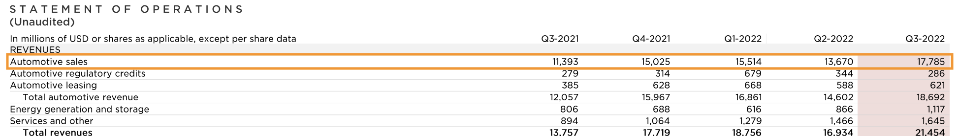 如果按照特斯拉平均售价5.5万来算,保守点预估汽车销售收入大致在188亿,再加上碳积分收入,和汽车租赁收入,预估应该在197亿左右,然而实际上汽车部分营收仅为186.9亿美元,这块数据还是比较低于预期的。