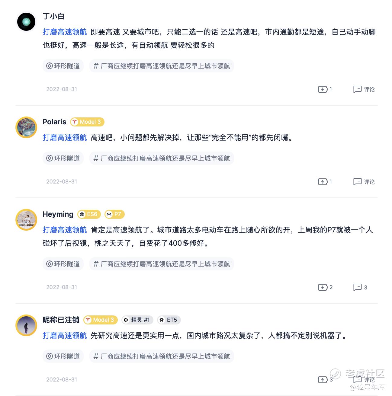 恰巧我们今年 9 月在社区中讨论过这个问题,到底应该继续打磨高速领航还是尽早上城市领航。