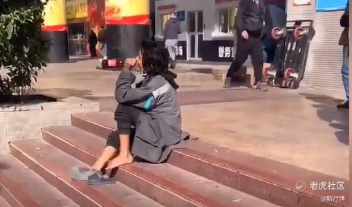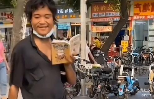 有时,他会向行人上讨一支烟,有时又和街铺要一碗水,有时又踢着自己破烂的拖鞋,在原地有模有样地转圈跳舞,显得非常专业。