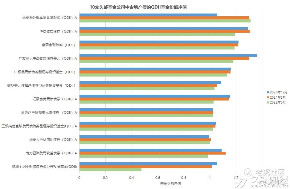 久期财经统计了10家头部基金公司的QDII报告,在2020年12月至2022年6月期间,前五大债券的持仓都产生了较大变化。从基金持仓变动情况来看,多数在2020年12月及2021年6月都重仓高收益地产债,此后受中资地产美元债违约潮影响,出现明显调仓。部分QDII基金在2022年6月的报告中甚至前五大重仓债券中不再出现地产名字;亦有部分QDII进行抄底,于违约潮后建仓流动性较好的房企。分析师基于10家头部基金公司的12只QDII基金进行讨论: