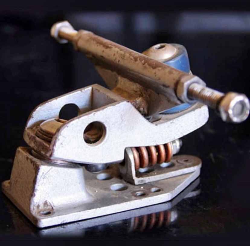 1995年,Venice Beach旁两个意图在陆地上找寻冲浪感的年轻人,Greg Falk和Neil Carve,梦想着在沥青和柏油马路上驰骋。他们开始尝试各种角度的支架,同时也考量着不同硬度的材质组合,最终Neil Carve焊制出了第一个双轴支架,在此基础上又研发出了可以支撑长久平稳摆动的弹簧桥,这款支架被命名为C1,标志着陆冲运动的正式诞生。