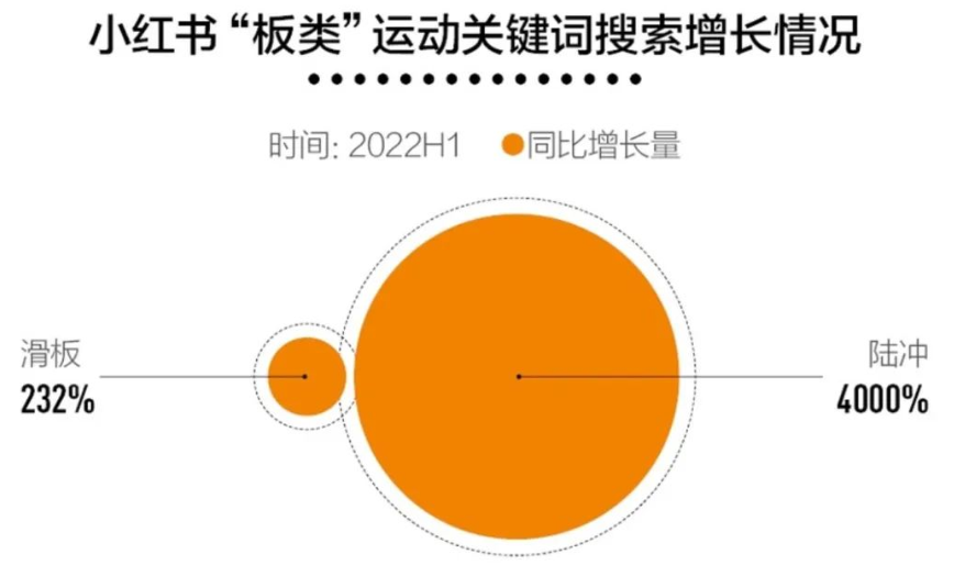 仅上半年,小红书上「滑板」类别的相关搜索量同比增长232%,其中陆冲热度增长最快,同比增长42倍。数据显示,陆地冲浪板从今年2月搜索量开始暴涨,6月小红书陆地冲浪板比去年同期增长约50倍。
