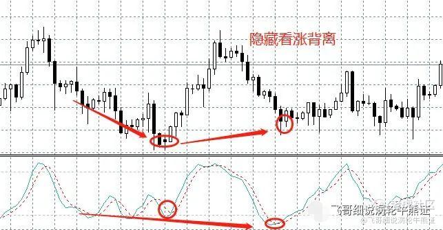隐藏背离指的是指标持续走低或走高,但市场价格反而出现更高的低点或更低的高点。