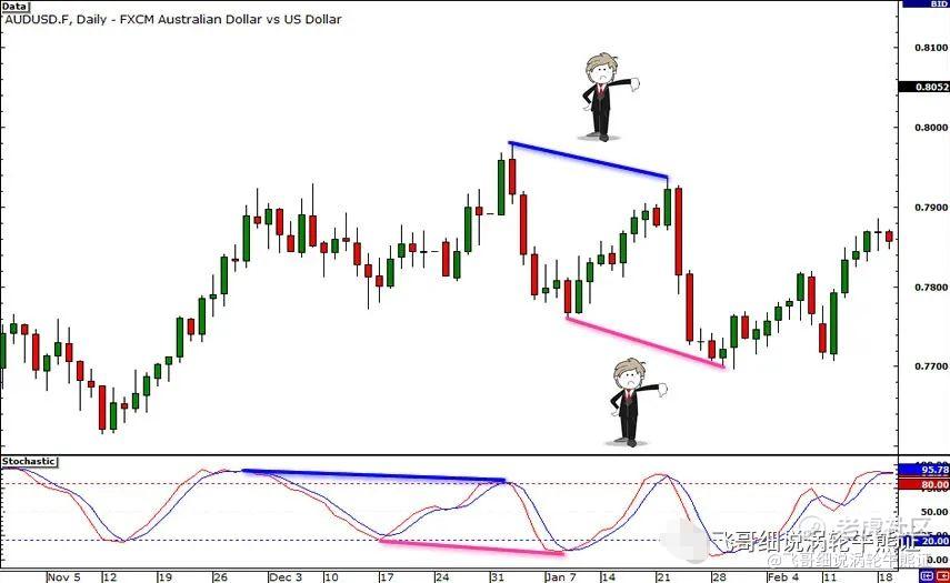 可以利用随机指标(Stochastic Oscillator)中的2条线交叉作为背离验证。也可以利用指标脱离超买超卖区域进行验证。