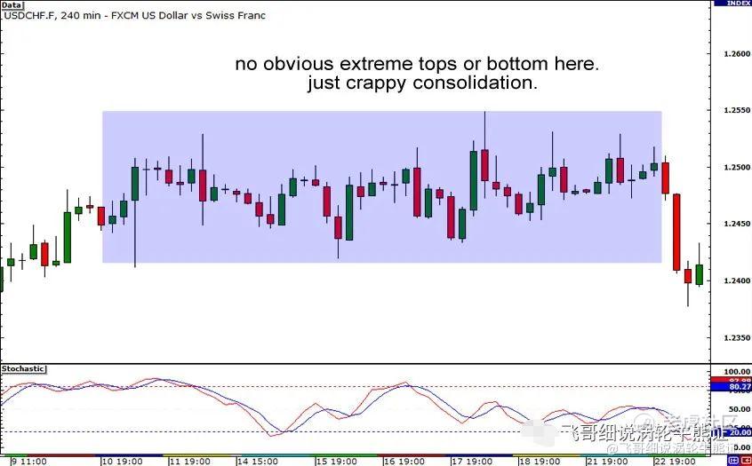 出现以上情况是背离信号的前提,如果市场一直处于没有明显高低点的震荡趋势,就不要在这种情况下寻找背离信号。