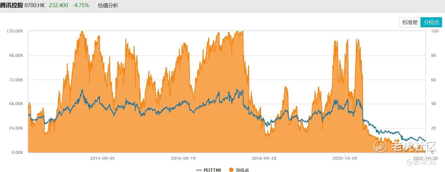 根据最新数据,腾讯目前估值水平处于历史底部,市盈率PE仅为10.82,为近十年以来的历史最低点。