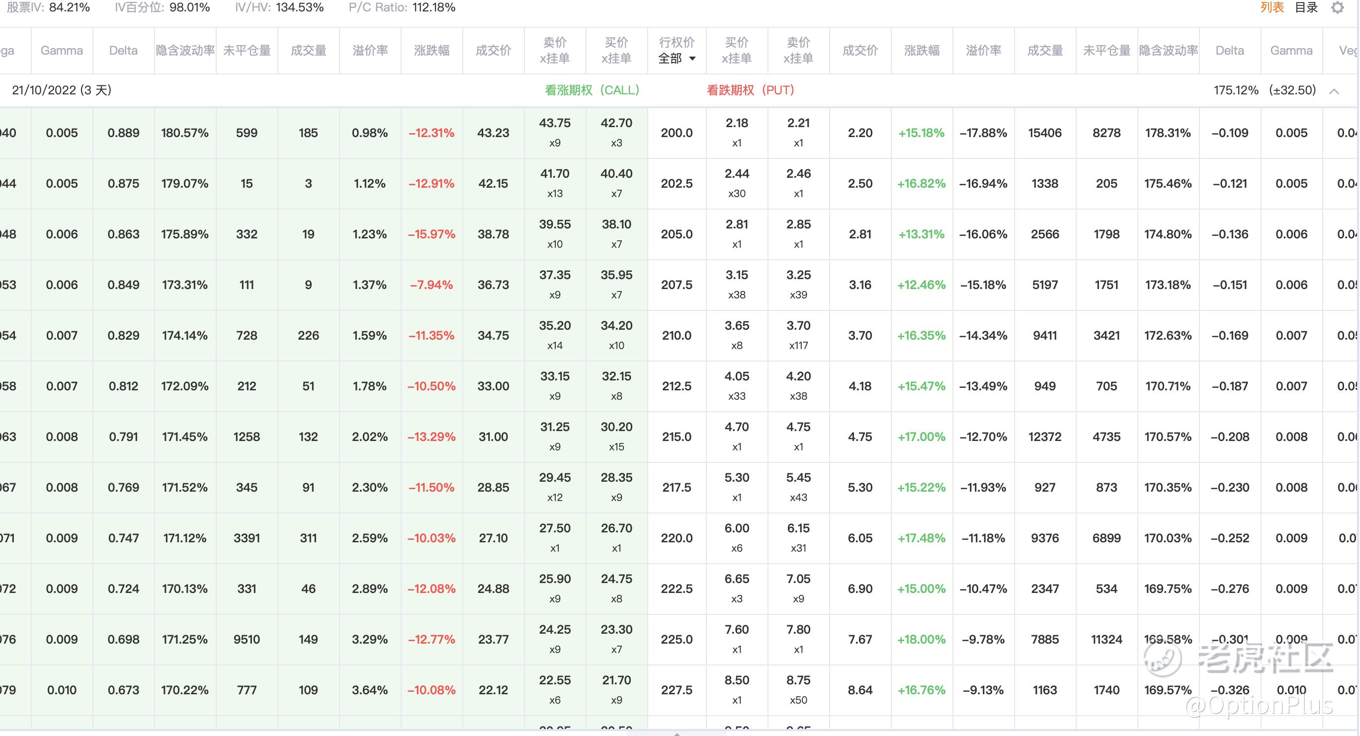 如何择价?Sell Call 的行权价会放在上面我说的阻力之上,即$300,预计今晚开盘行权价$300 本周到期的期权权利金应该能不错的权利金Sell Put方面,我会选择$200的,非常安全,是上周CPI暴跌时候的低点,当然如果今晚PUT价格跌到1以内我可能就不做了。