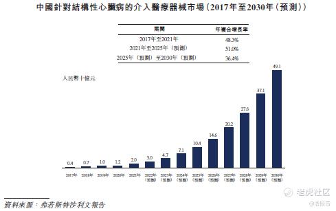 在中国,符合针对结构性心脏病的介入治疗条件的患者人数由2017年的约480万名增至2021年的约530万名,并预计于2025年达到约6百万名。中国针对结构性心脏病的介入医疗器械市场的市场规模由2017年的人民币4亿元增至2021年的人民币20亿元,年复合增长率为48.3%,并预计于2025年达到人民币104亿元,2021年至2025年的年复合增长率为51.0%。下图载列中国针对结构性心脏病的介入医疗器械市场的历史和预测增长。