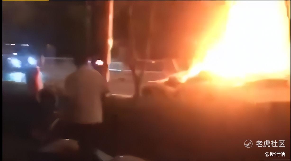 多条公布出来的视频显示:夜间的道路护栏中间,一辆车燃起大火,现场有不少路过的市民。随后,当地警方赶到,封锁了起火现场。