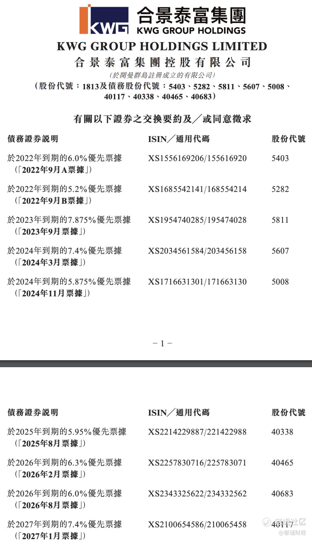 公告称,合景泰富将对公司一年内到期的三笔美元债券进行交换要约和同意征求交易。