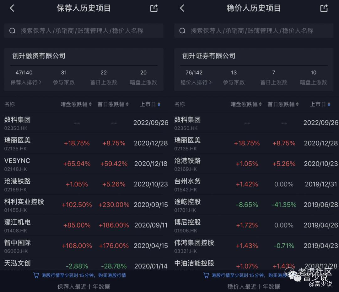 5、再说一下保荐人及稳价人“创升证券”,从保荐历史来看,业绩非常的好,从2020年4月15日~2020年12月28日,业绩都是非常好,未出现过破发,不过有一次算是不光彩的一面,作为保荐人,母公司上市本应出力,结果暗盘直接破发21%,首日更是恐怖破发了45.56%,操作手法凶狠,可见资金只认利,而作为稳价人来看,其实业绩一般,时隔近两年,操刀是否会有惊喜呢?还是恶魔的到来?这只能上市才能验证。