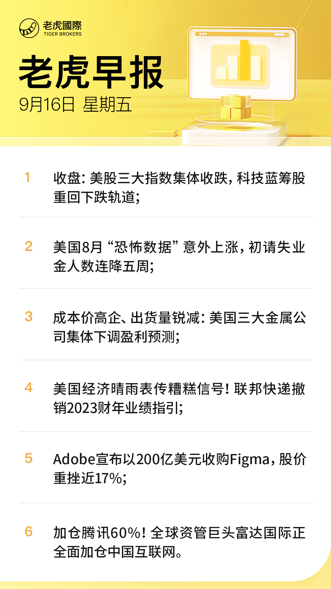 大型科技股重回下跌轨道,其中$苹果(AAPL)$ 跌1.89%、$特斯拉(TSLA)$ 涨0.38%、$亚马逊(AMZN)$ 跌1.77%、谷歌A跌1.99%、$微软(MSFT)$ 跌2.71%。$Adobe(ADBE)$ 跌近17%,此前宣布以200亿美元现金加股票的方式收购Figma公司。