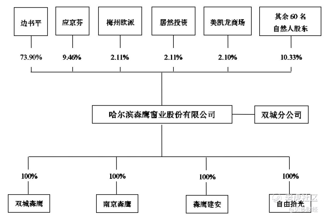 招股书显示,森鹰窗业的实际控制人为创始人边书平及其夫人应京芬。其中,边书平持有森鹰窗业73.90%的股份,应京芬持有森鹰窗业9.46%的股份。