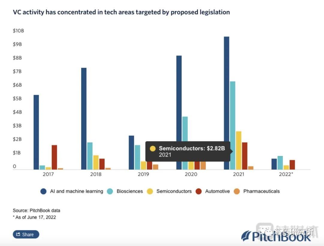 其中,2021年,美国投资者在中国 AI 行业参与115笔交易,总额达98亿美元,创2017年以来的最高水平,而芯片半导体领域投资达28.2亿美元。但到了2022年,美国风投在中国芯片半导体领域的投资额仅为8亿美元(截至6月17日)。
