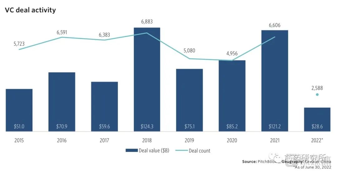 这意味着,随着拜登政府对中国芯片半导体领域的打压,以及更严格控制美元基金投资流向中国科技行业,加上全球经济放缓导致科技股大跌,让美国对中国风险投资的兴趣,从高增长反弹到低规模。