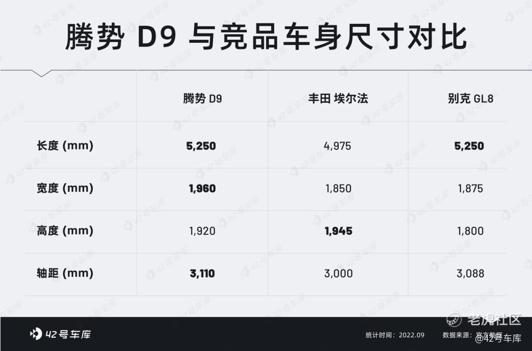 从参数上也可以看到,腾势 D9 相比于埃尔法和 GL8 均有一定优势。
