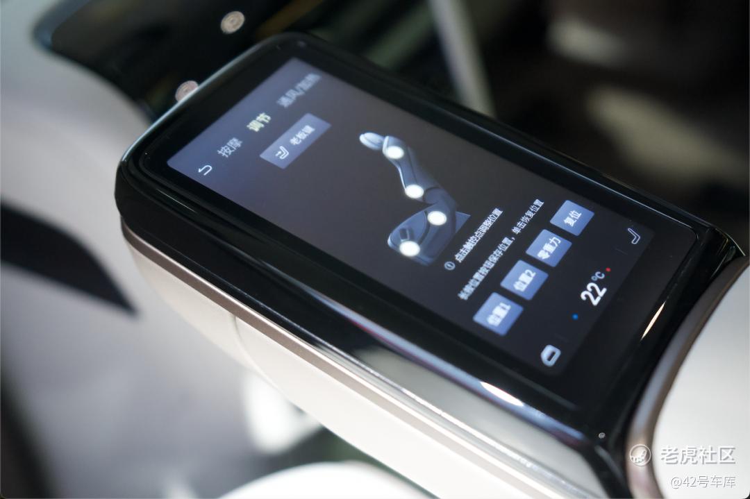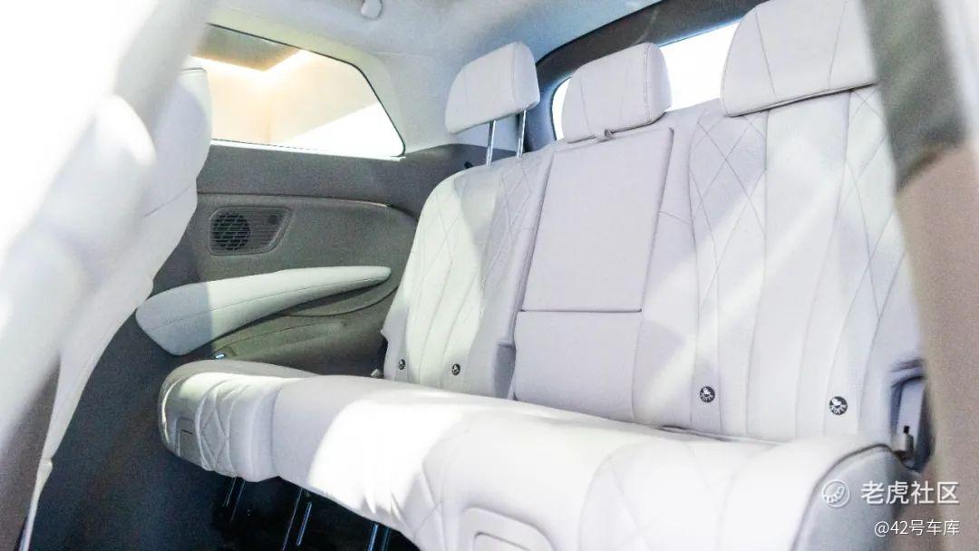 第二排座椅本身的填充物较软,乘坐体验非常舒服。座椅的可调节选项很多,可以通过扶手上的触控屏幕对座椅进行 10 向调节,另外头枕还可以提供 6 向调节。把座椅调到自己舒适的位置,再抬起电动腿托,打开座椅按摩,就能享受一下当老板的感觉。