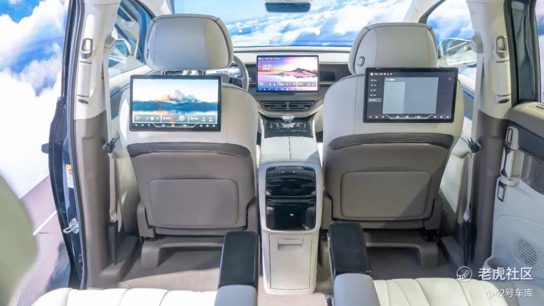 第二排两个座椅前方都有一块娱乐屏幕,这种配置以前还是在百万级的行政轿车上比较多见。