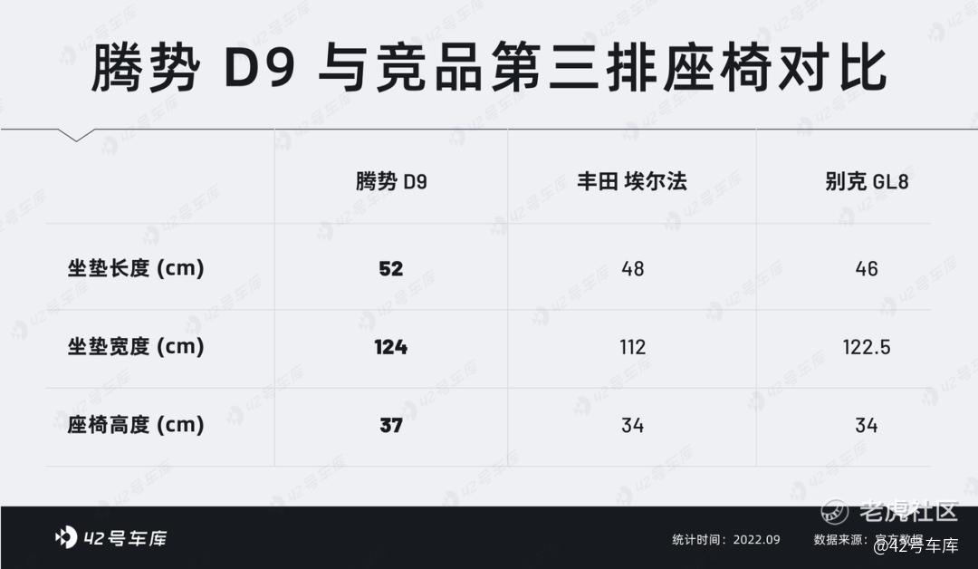 同样,第三排腾势 D9 依然保有对其竞品的优势。