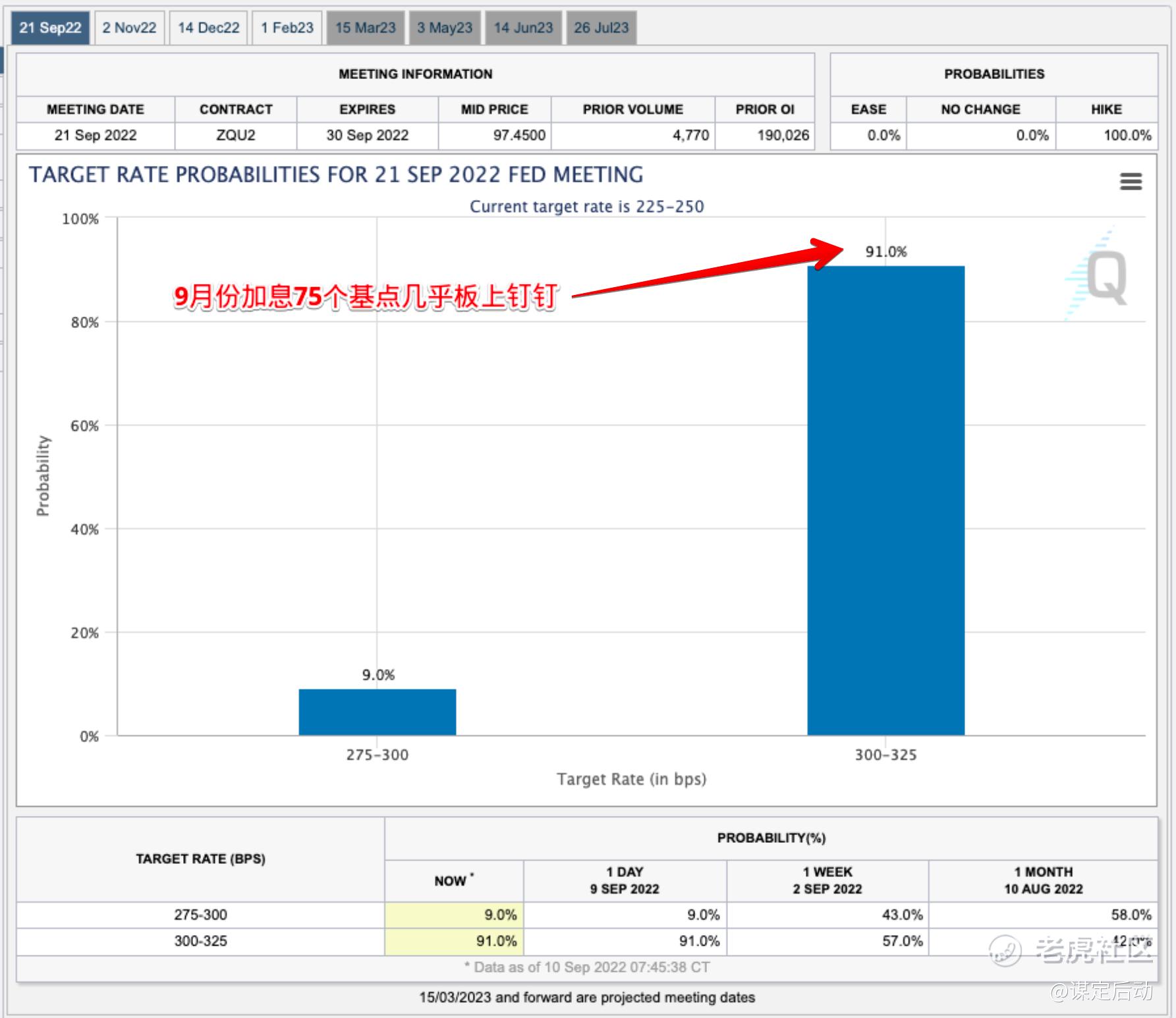 随着鲍威尔的鹰派表态,9月份加息75个基点已经是板上钉钉的91%的概率了。
