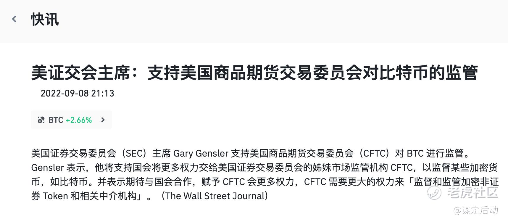 9月8日比特币一天大涨10%,这可是近两年来难得一见的的盛况。原因是美证交会主席Gary Gensler发表的一篇关于加密货币的报告,报告中他表示市场中近1万种不同的代币中绝大部分是属于证券,也就是说是一种股票,因此应该受到SEC的监管。这篇报告对久旱的加密货币领域像是一场及时雨。