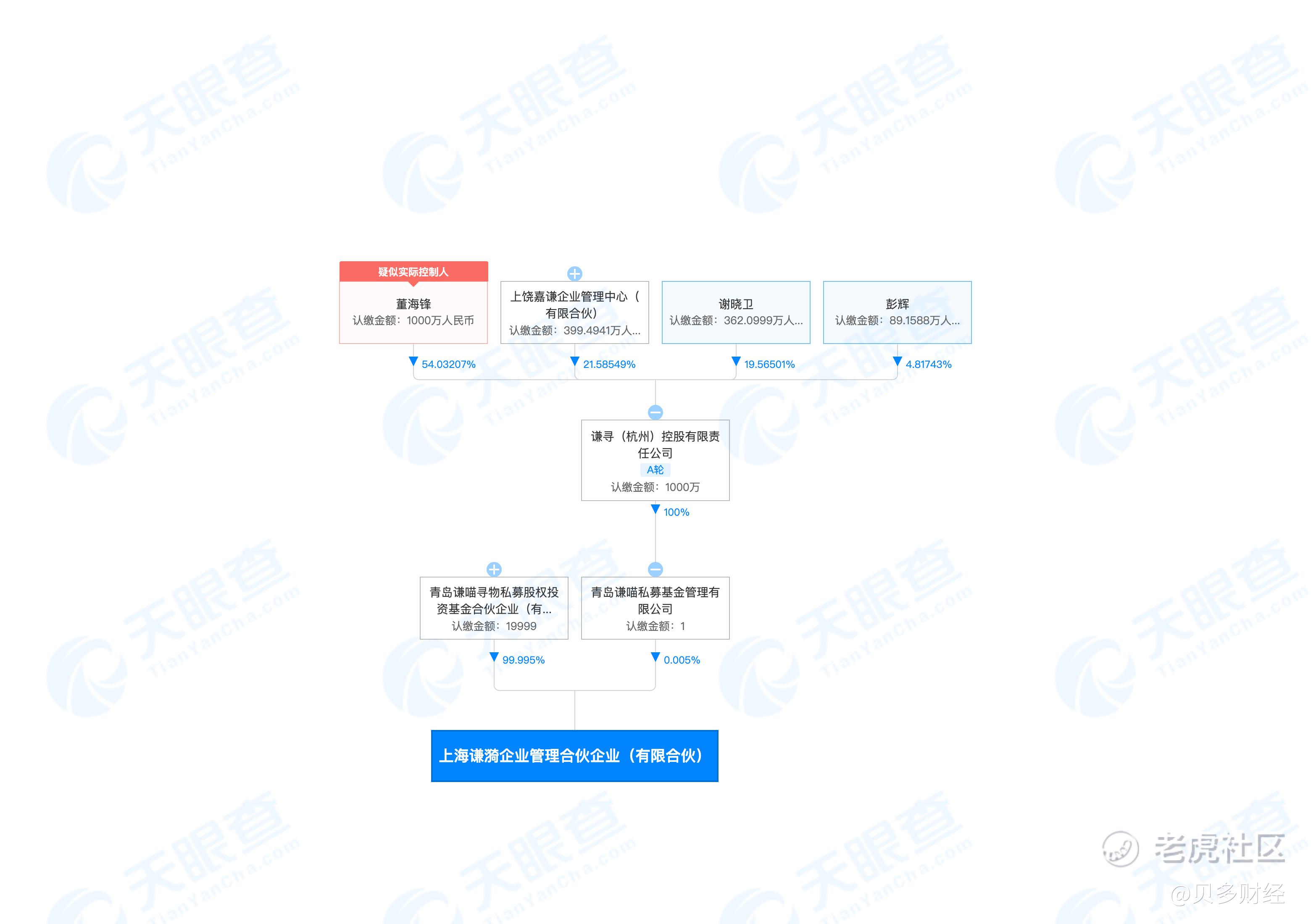 其中,Qianyi Holding由上海谦漪企业管理合伙企业(有限合伙)(下称“上海谦漪”)控股。据天眼查信息显示,上海谦漪的间接股东包括董海锋最终控制的青岛谦喵寻物私募股权投资基金合伙企业(有限合伙)和谦寻控股。