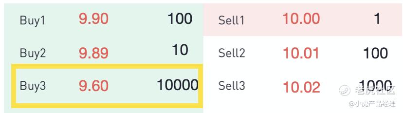 情况一:你着急想买10个苹果,于是你出9.91,但是等了一会没能成交,看了大屏幕,看到要价10那个人只打算卖1个,而只要你稍微提高一点10.01就有人卖100个。为了快点买到,你改单为10.01,叮,成交。
