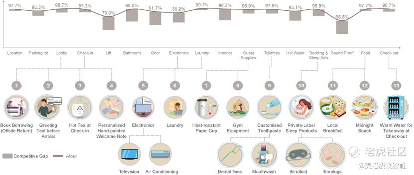 凭借优秀的服务品质和用户体验,配合丰富的内容运营打法,短短时间,亚朵已成为国内中高端酒店行业中让客户最满意的酒店品牌。根据Brandwisdom进行的独立调研,从2017年开始,亚朵的总体客户满意度就一直排在六大主流中高端连锁酒店的第一名,在Brandwisdom确定的17个关键的酒店客户互动和消费场景中,亚朵的服务都获得了最高的客户满意度评级。