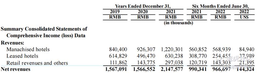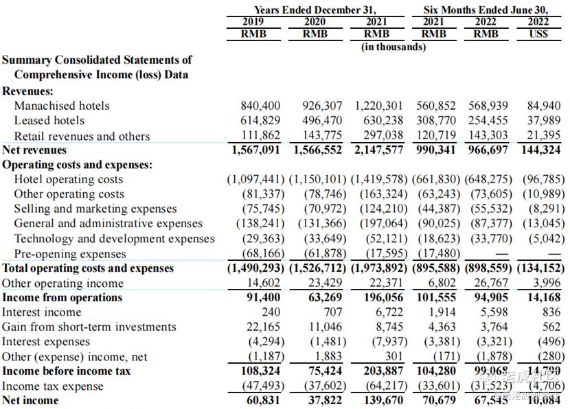 从整体的财务数据来看,2019年到2021年,亚朵分别实现收入15.7亿、15.7亿以及21.5亿元;净利润分别为0.61亿、0.38亿以及1.40亿元,连续三年盈利。即便受疫情影响,2020年其收入仍实现同比基本持平,表现了很强的经营韧性;随着疫情逐渐恢复,2021年收入实现37.1%的强劲增长,净利润则实现269%的大幅增长。