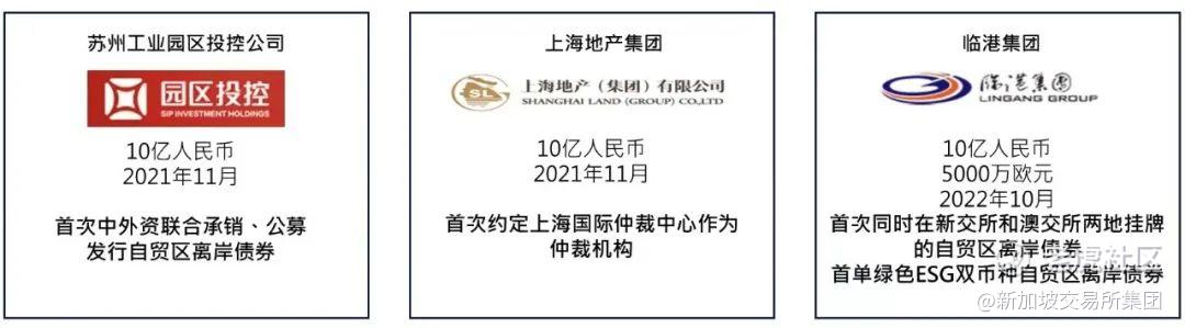 截至目前,有上海地产集团、苏州工业园投控、临港集团等已经在新交所完成了自贸区离岸债的挂牌,并且每只债券都根据现有的相关规则框架进行了创新,充分满足了发行人的需求和预期。