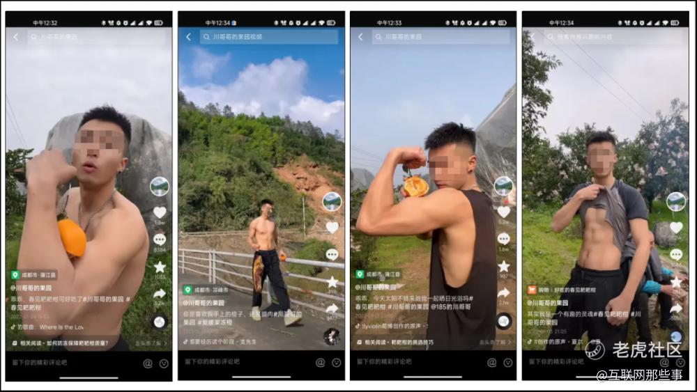 类似于“天水苹果”“春见粑粑柑”,男色经济下的新媒体人为了卖货不惜“出卖身材”,屏幕前除了红彤彤的苹果就是白花花的肌肉,网友们涌进直播间,在弹幕里留下足迹:“我本来不爱吃苹果,但他叫我宝宝哎”。