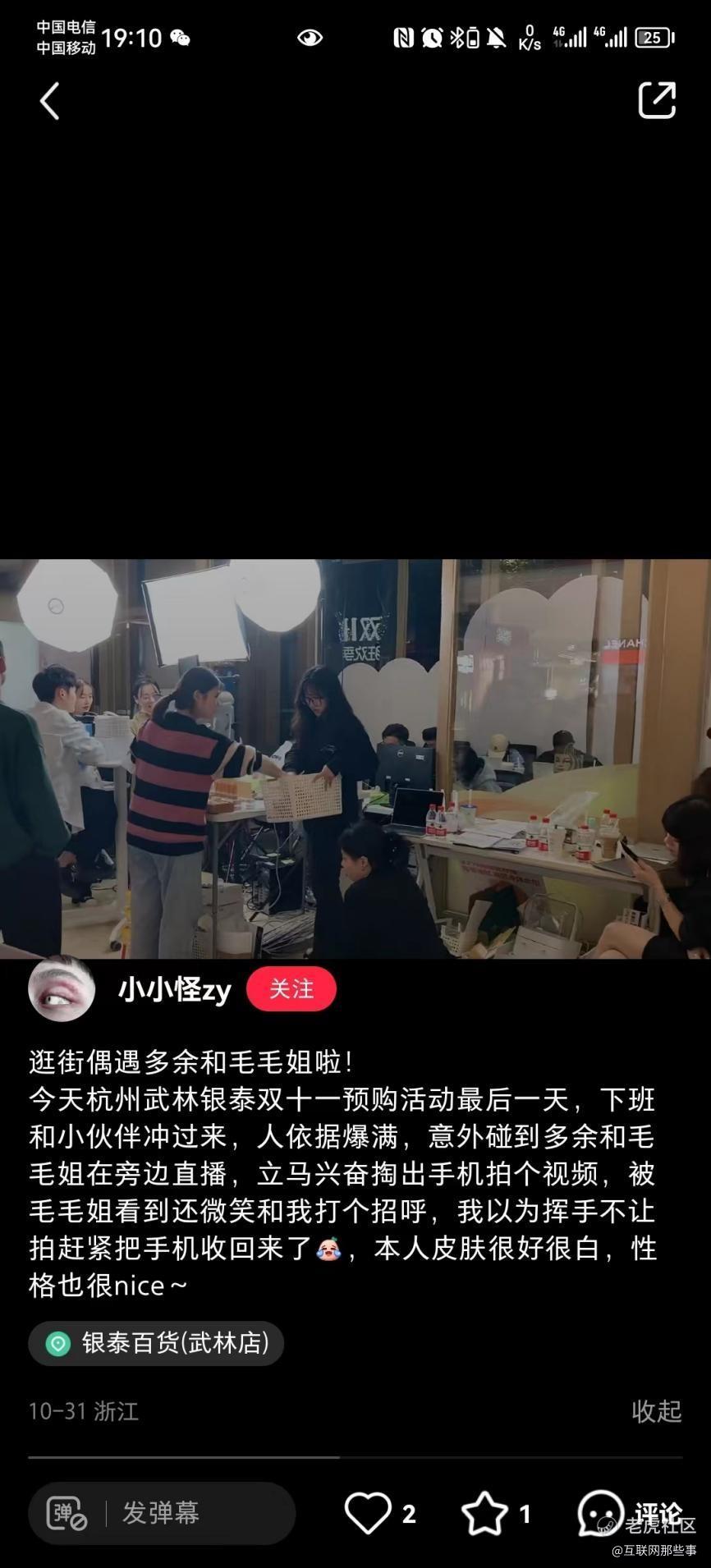 网友偶遇“毛毛姐”在银泰的双十一直播/小红书截图